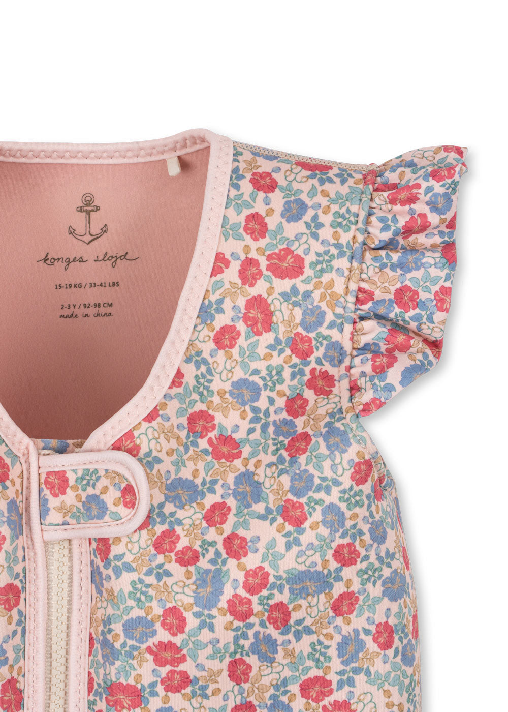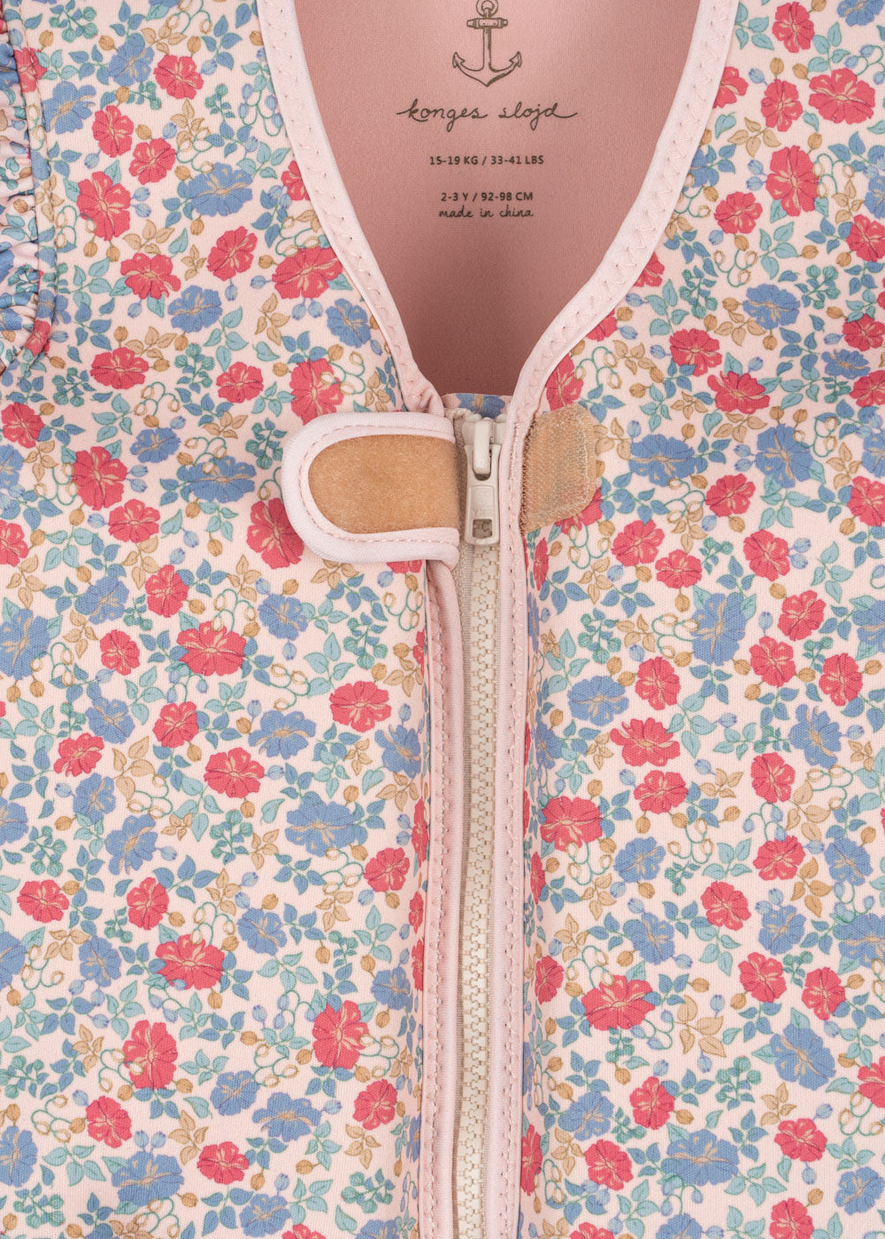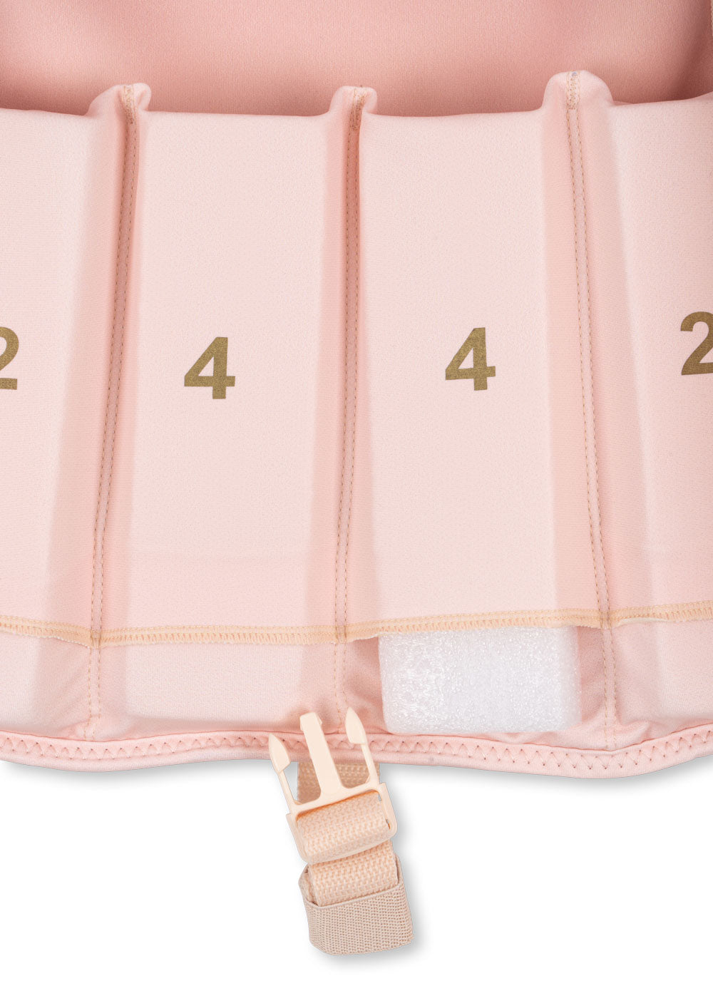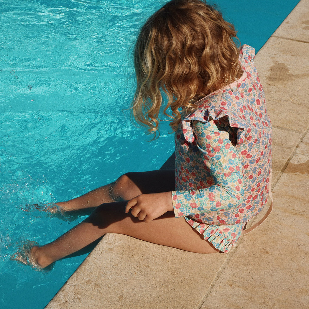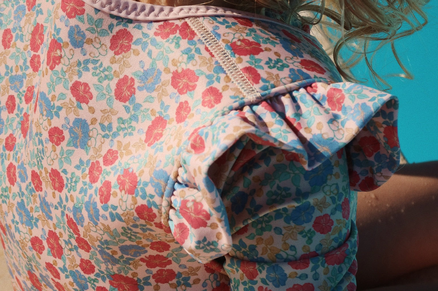 Colete de natação com detalhe de folhos nos ombros. Concebido com fecho de correr e velcro, além de uma tira de segurança com fivela na virilha. Um colete de natação é o acessório de natação perfeito quando os seus pequenos estão a começar a brincar na água. Acrescenta flutuabilidade natural e ajuda-os a sentirem-se confortáveis na água enquanto aprendem a nadar sozinhos.