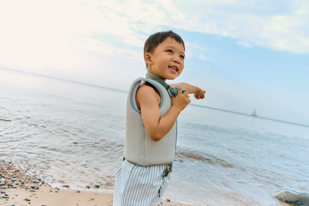 Deixe os pequenos nadadores ganharem confiança ao seu próprio ritmo com o colete de natação DOVE, o favorito da família. Fabricado em tecido listrado de seersucker, oferece uma flutuabilidade suave e, ao mesmo tempo, permite liberdade de movimentos para brincar e divertir-se na água. O fecho frontal facilita na hora de vestir, e a alça de segurança garante um ajuste perfeito.
