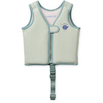 - Note que o colete de natação deve estar bem ajustado à volta do peito da criança para garantir uma flutuabilidade segura.