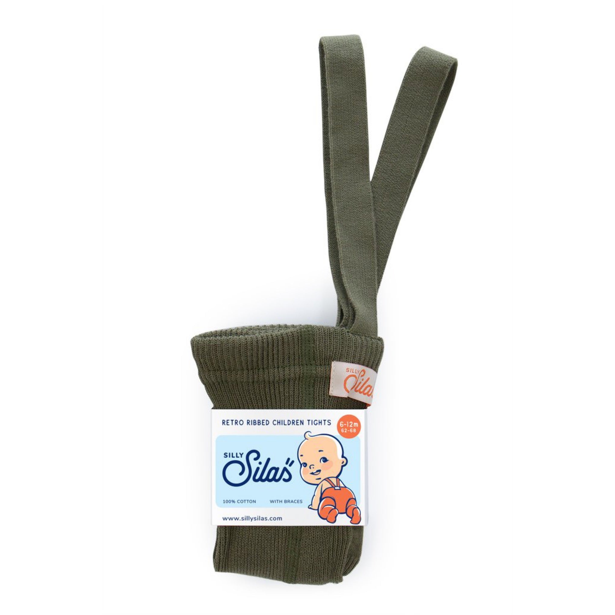 Collant com Pés com Suspensórios - Olive - Silly Silas