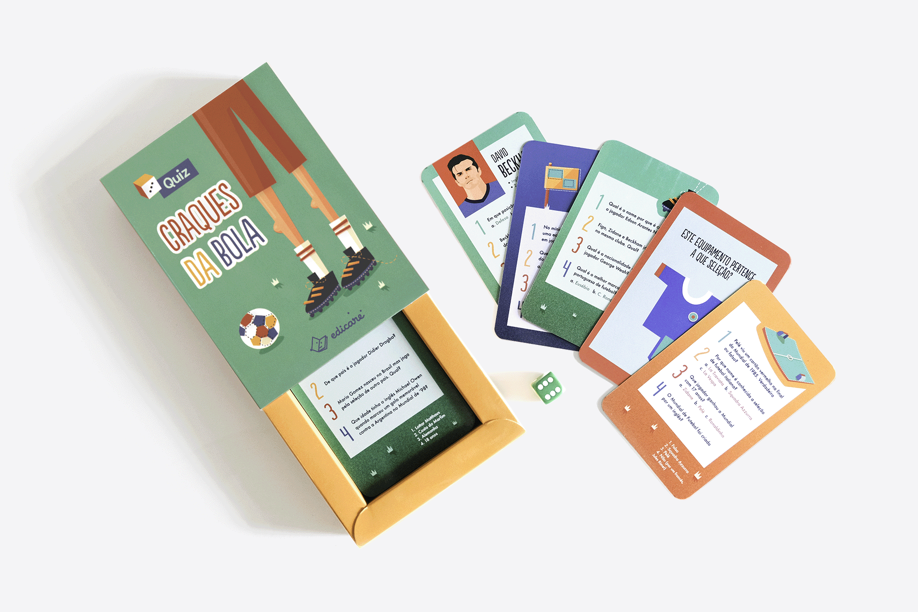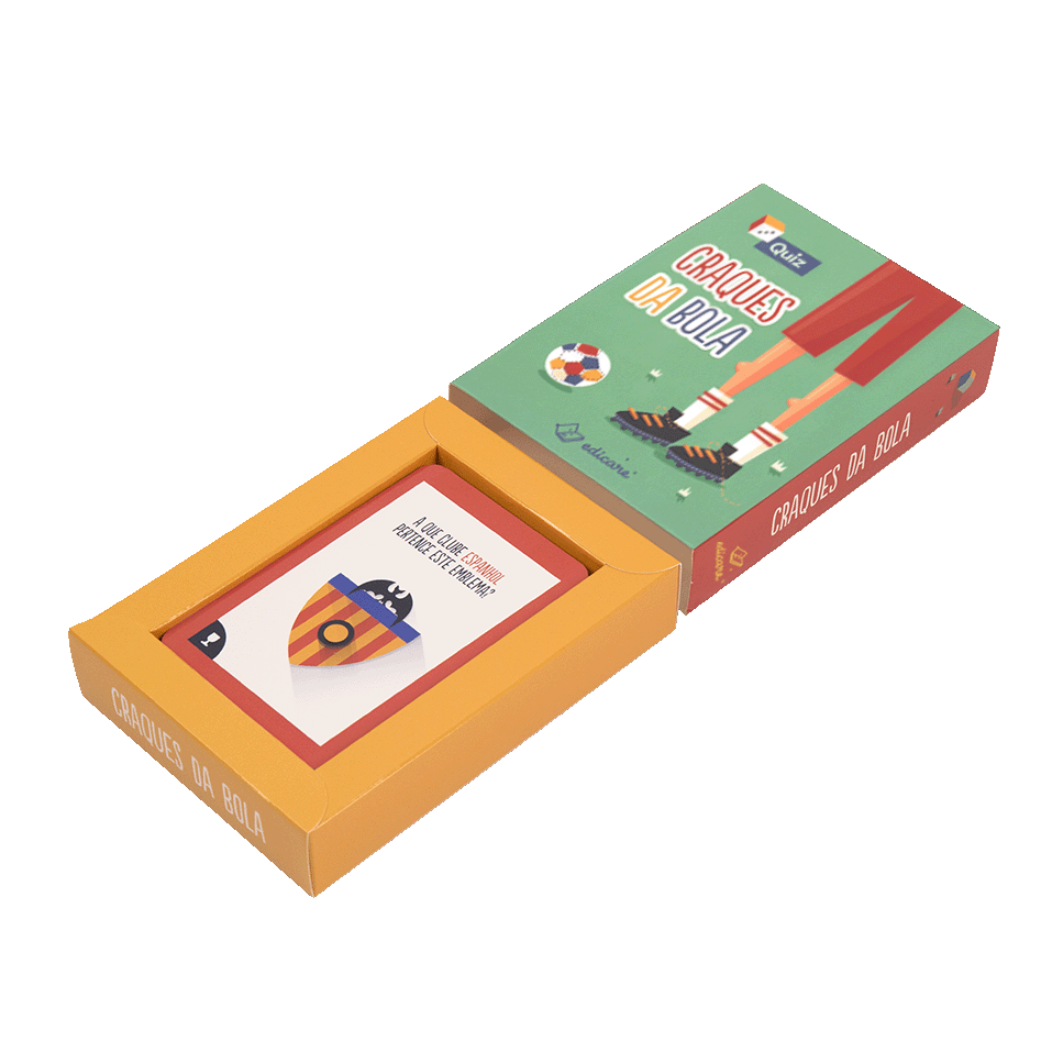 Um jogo de cartas para testares os teus conhecimentos sobre o mundo do futebol, com dezenas de perguntas e respostas sobre quatro áreas diferentes: Jogadores, Mundial, Factos interessantes e Equipamentos e emblemas. Segue as instruções, lança o dado e boa sorte! Leva-o para todo o lado e desafia os teus amigos para uma partida! Mostra que és um verdadeiro Craque da Bola!