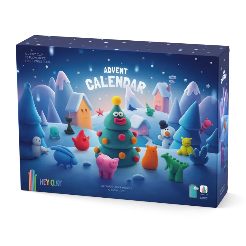 Conheça o novo Calendário do Advento que tornará este inverno ainda mais festivo! De 1 a 24 de dezembro, cada dia será único, pois poderá esculpir um brinquedo novo todos os dias. E no dia de Natal, prepare-se para mais uma surpresa para celebrar a data! 25 dias — 25 brinquedos diferentes! Enquanto espera pelo Natal, crie uma celebração diária para si: decore a árvore de Natal e o seu quarto com os brinquedos, ofereça aos seus entes queridos ou deixe a sua imaginação fluir.