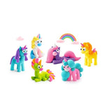 Embarca numa aventura celestial rumo ao mundo dos Unicórnios Arco-Íris! Estas criaturas mágicas convidam-no a descobrir as nuvens e os arco-íris dos seus sonhos. Conheça histórias incríveis "para além do arco-íris" e encene-as com os adoráveis Unicórnios Arco-Íris, ou crie os seus próprios contos de fadas. Massa de modelar colorida que seca ao ar, 3 frascos com aplicação interativa divertida para crianças a partir dos 3 anos.