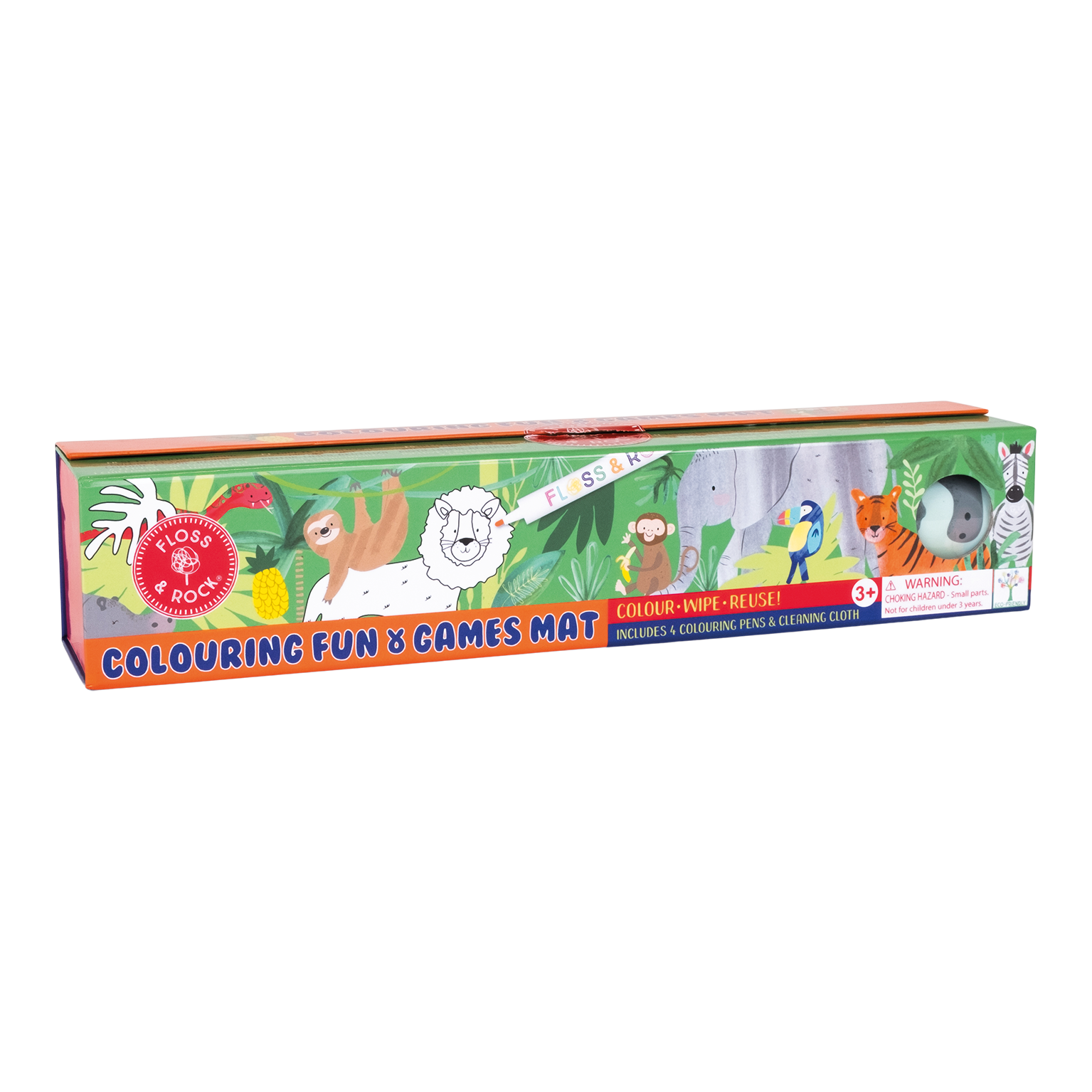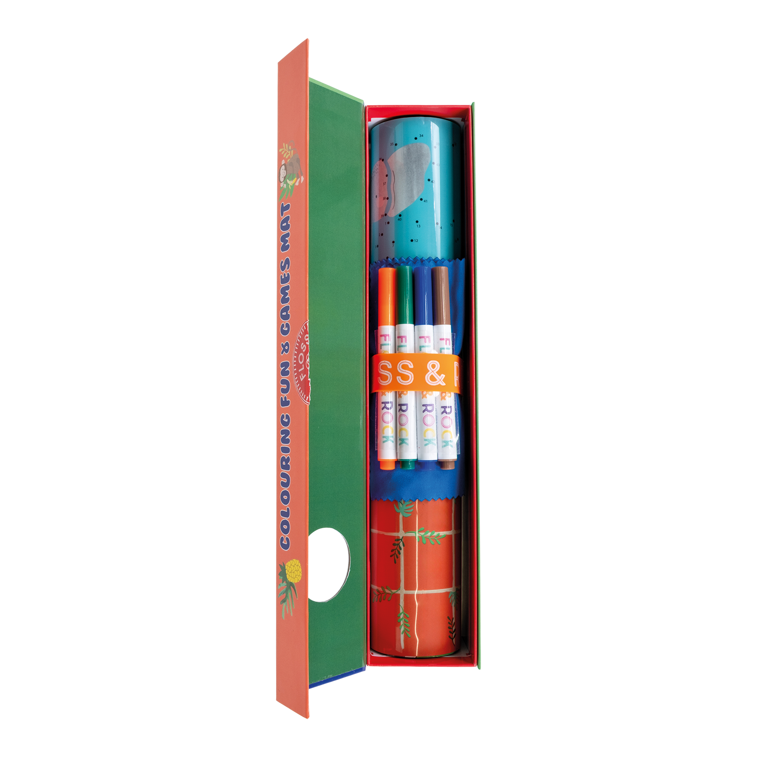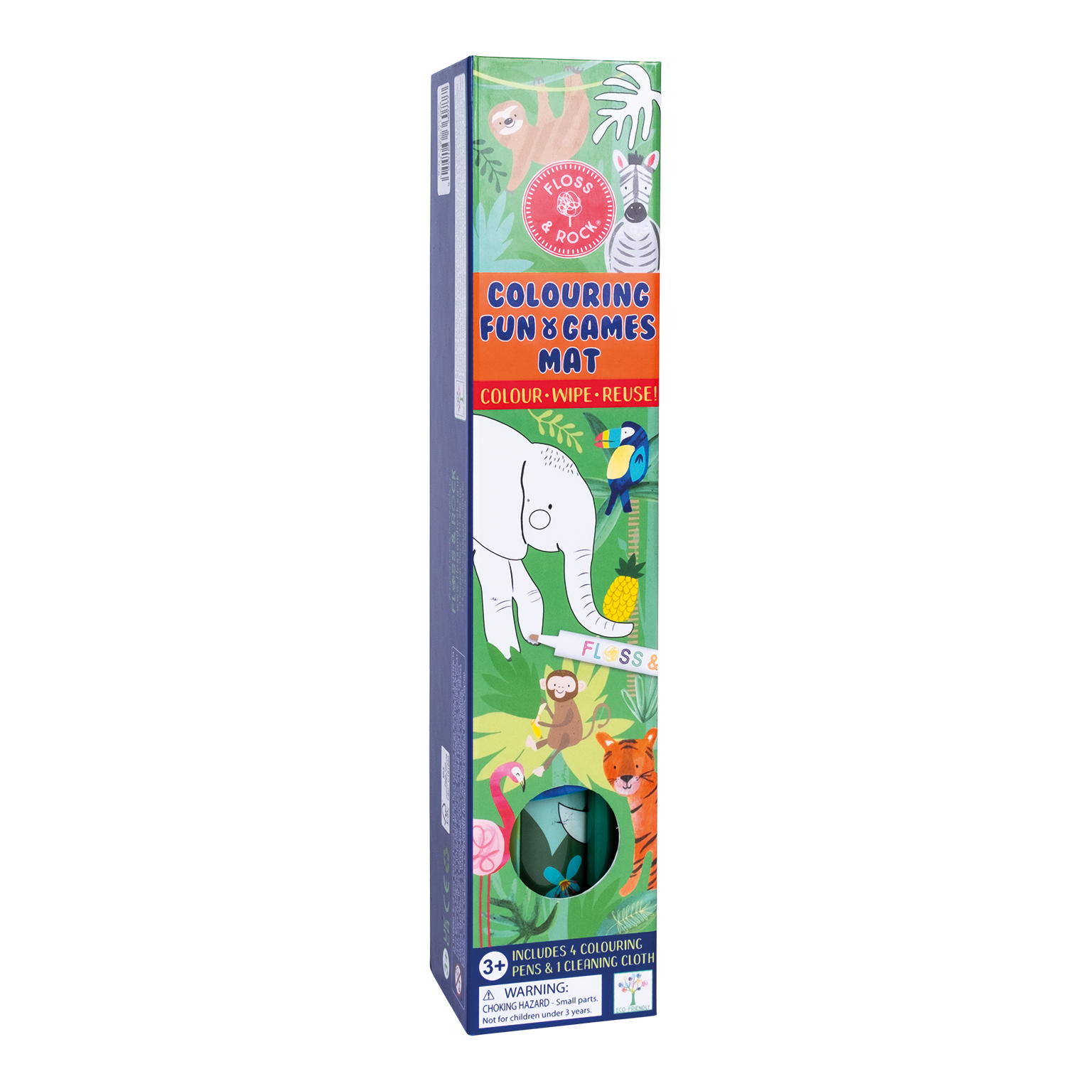 O nosso novíssimo Coloring Fun & Games Mat é uma atividade multi jogador brilhante para viagens. Basta estender o tapete para jogos de colorir, ponto a ponto, labirinto e jogo do galo. Quando terminar, limpe, enrole e utilize a faixa de fixação para guardar o tapete na prática caixa para utilizar continuamente! O nosso design Rainbow Fairy contém ilustrações de amigas fadas, animais engraçados e muito mais. O tapete inclui canetas de limpeza a seco de 4 cores, um prático pano de limpeza, faixa de fixação e uma caixa de arrumação reutilizável.