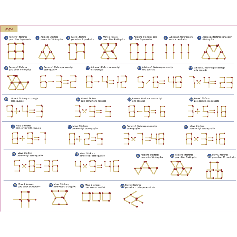 Jogos de Viagem - O Puzzle de Palitos de Fósforo é um desafio inteligente e portátil, criado para manter a mente afiada durante as viagens. Este jogo compacto estimula a resolução de problemas e a criatividade, enquanto reorganizas os palitos para resolver diversos puzzles. Ideal para todas as idades, oferece entretenimento envolvente para passar o tempo durante viagens ou períodos de espera.