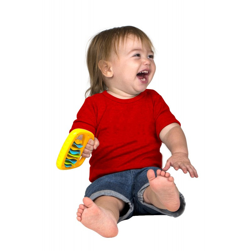 - Cada tamanho perfeito O criador de ritmos produz um som diferente que irá cativar os pequenos enquanto eles se deliciam com o maravilhoso mundo da criação musical.