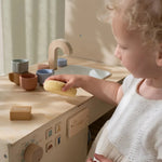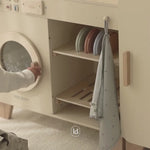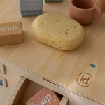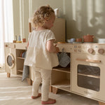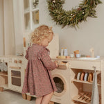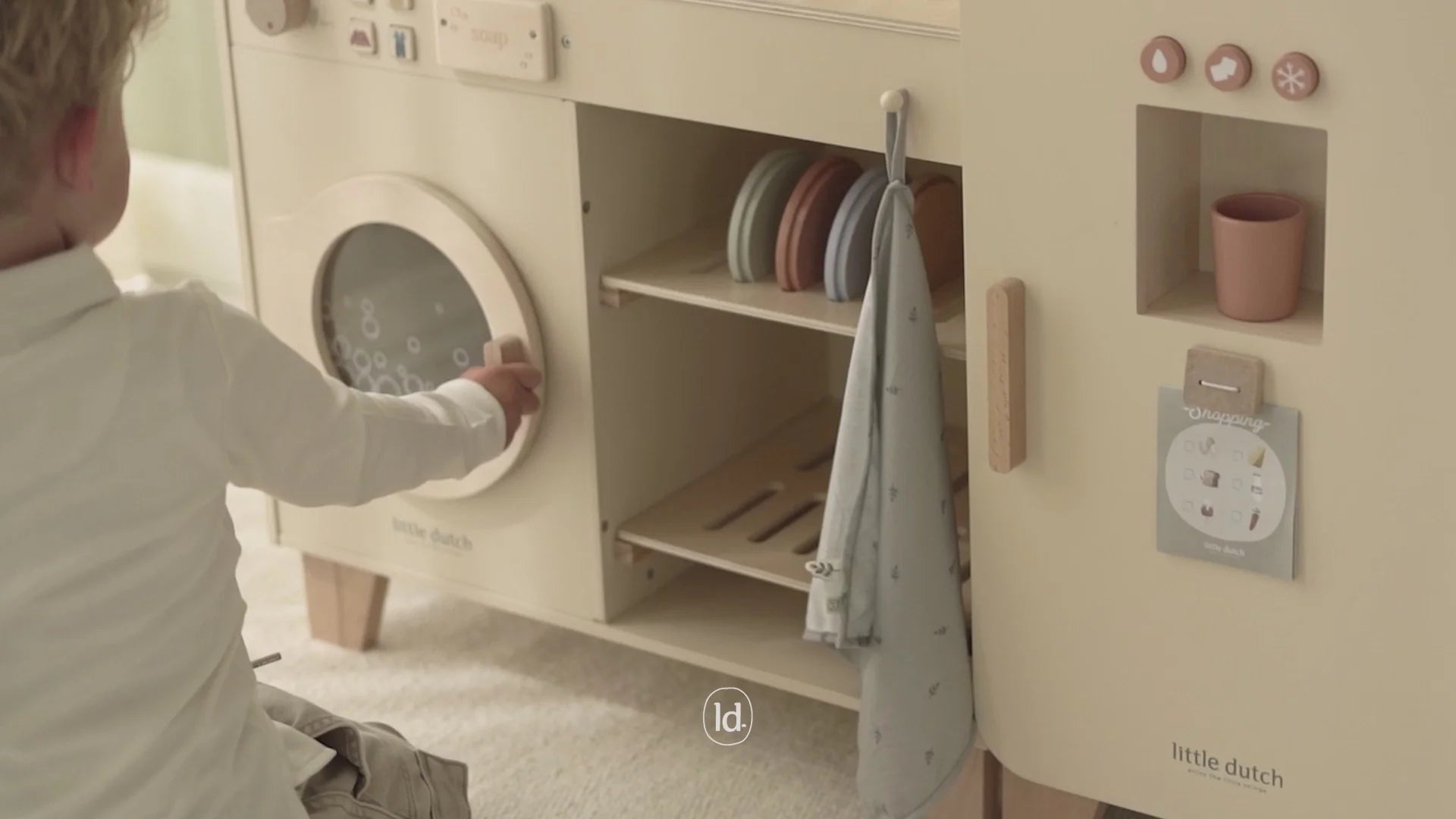Com esta máquina de lavar roupa e máquina de lavar loiça de madeira, as tarefas domésticas transformam-se numa verdadeira aventura. O conjunto inclui quatro chávenas, quatro pires, dois pratos, detergente, sabão em barra e um pano de cozinha. Lave a loiça no lava-loiça e dê uma pequena lavagem às roupinhas da boneca na máquina de lavar. Os botões realistas com ilustrações e o compartimento especial para o sabão em barra tornam a brincadeira ainda mais divertida. Combine a máquina de lavar roupa e a máquina de lavar loiça com a estação de cozinha de brincar e o frigorífico para criar um cantinho de cozinha completo. Diversão sem fim para os pequenos heróis da casa!