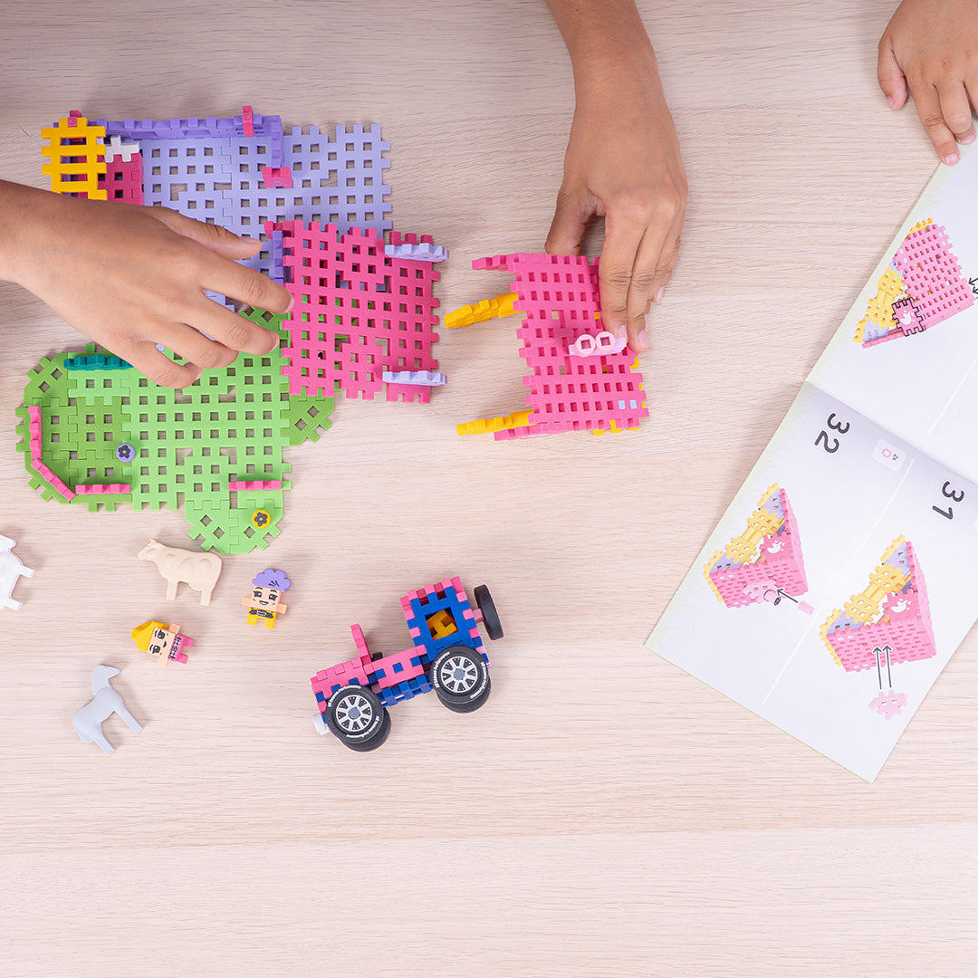 - Com este conjunto, pode criar um rancho funcional completo com casa, veículo, relvado e animais fofos. Com 112 elementos flexíveis e coloridos, as possibilidades de construção e brincadeira são infinitas. Cada criança pode projetar o seu próprio pedaço de vida tranquila no campo.