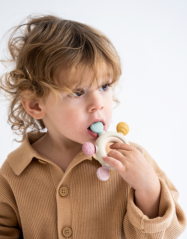 Mordedor Sensorial em Madeira e Silicone
