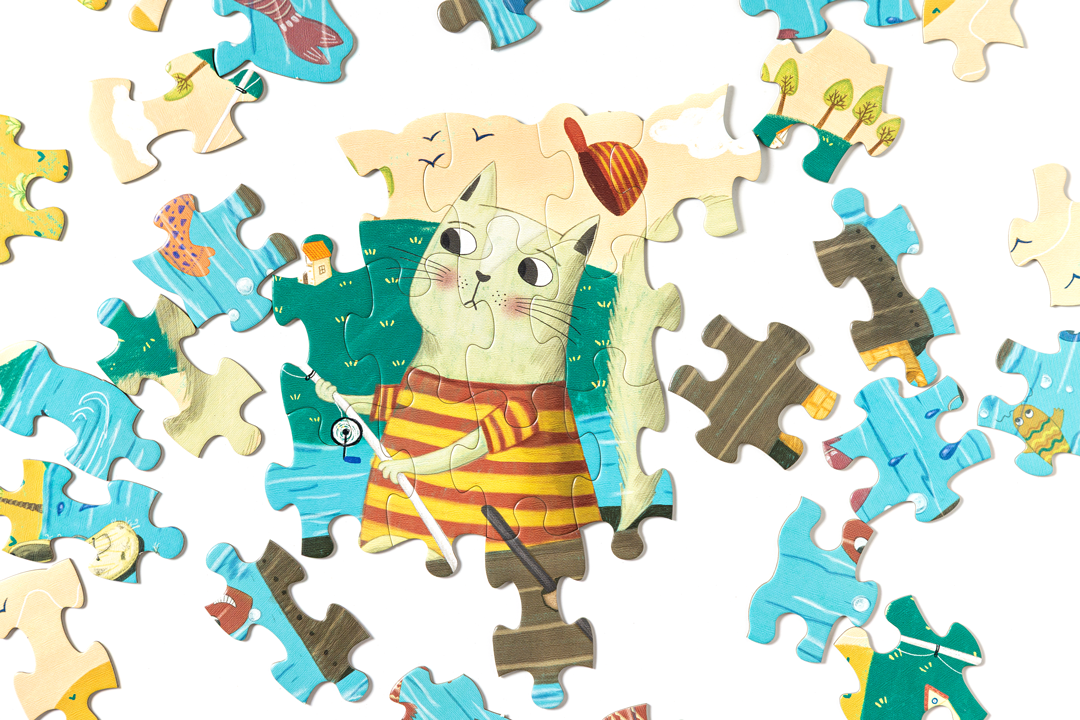 Fazer puzzles é um grande passatempo, mas ouvir uma história não lhe fica atrás! Que tal fazer as duas coisas? Nesta caixa vais encontrar um puzzle de 50 peças e uma fábula muito divertida sobre um gato pescador que gosta muito de pescar. Será que a pescaria lhe vai correr bem?