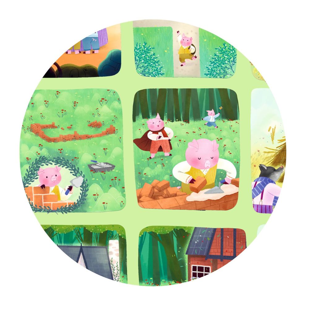 Monta o puzzle para revelar a famosa história dos Três Porquinhos em forma de banda desenhada muda. Este magnífico puzzle de 35 peças vem numa linda caixa.