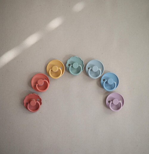A chupeta FRIGG Daisy com bordas recortadas que imitam pétalas de flores é a essência do design elegante. Os detalhes floridos e modernos chamam a atenção de todas as mães preocupadas com o estilo. Isso torna o FRIGG o ajuste perfeito para as mães de hoje que dão grande importância aos designs clássicos com toques modernos ao escolher os itens essenciais do bebé. A chupeta FRIGG Daisy cheia de charme está disponível nas cores monocromática e mista.