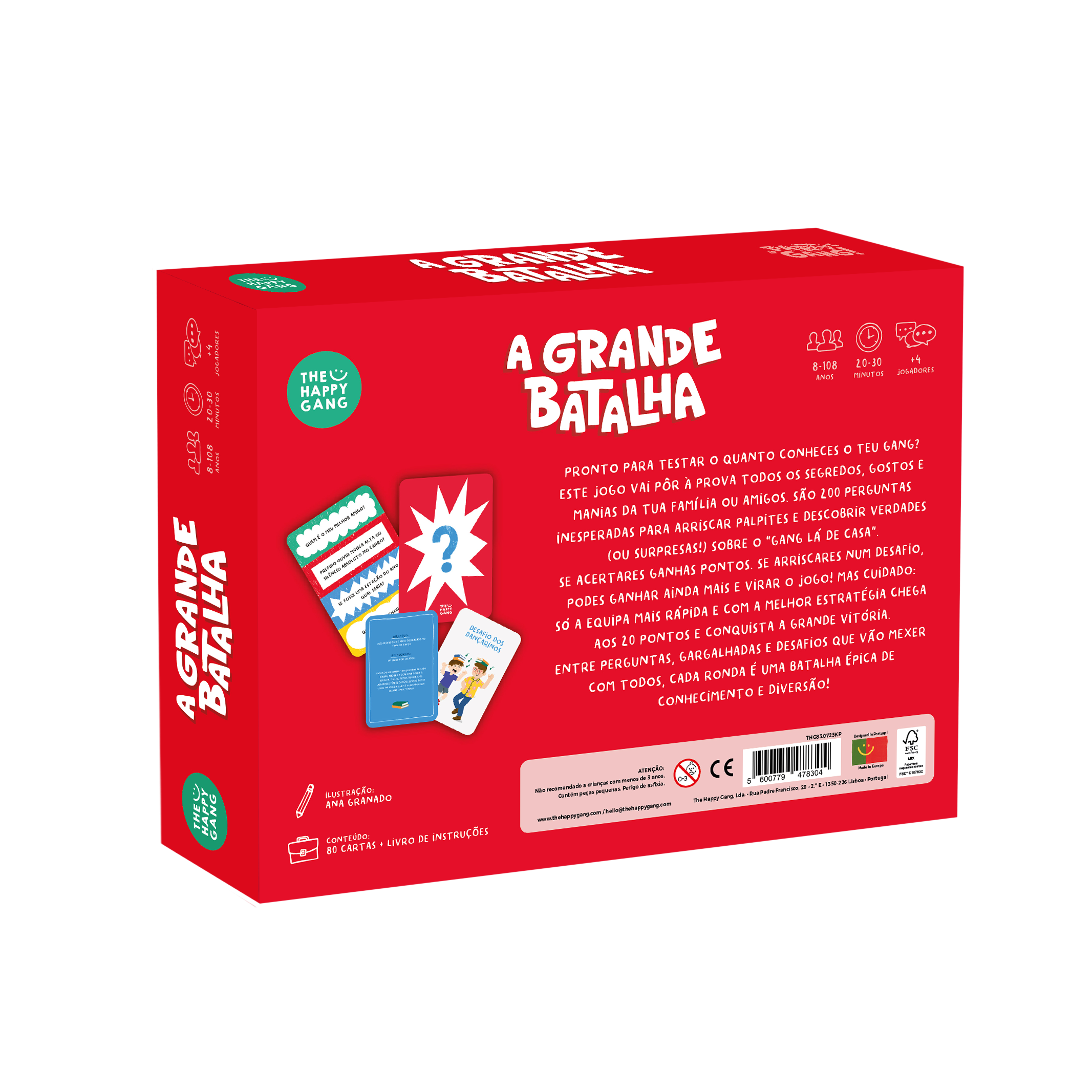 Pronto para testar o quanto conheces o teu Gang? Este jogo vai pôr à prova todos os segredos, gostos e manias da tua família ou amigos. São 200 perguntas inesperadas para arriscar palpites e descobrir verdades (ou surpresas!) sobre o "Gang lá de casa". Se acertares ganhas pontos, se arriscares num desafio, pode ganhar ainda mais e virar o jogo! mas cuidado: só a equipa mais rápida e com a melhor estratégia chega aos 20 pontos e conquista a grande vitória. Entre perguntas, gargalhadas e desafios que vão mexer com todos, cada ronda é uma batalha épica de conhecimento e diversão!