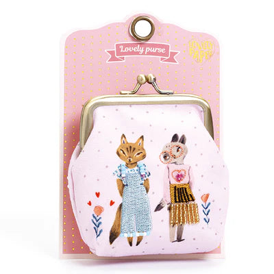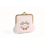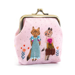 Lindo porta-moedas Djeco rosa, com estampado de dois adoráveis gatinhos na frente, detalhes bordados e pequenas contas. Desenhada por Lucille Michieli.