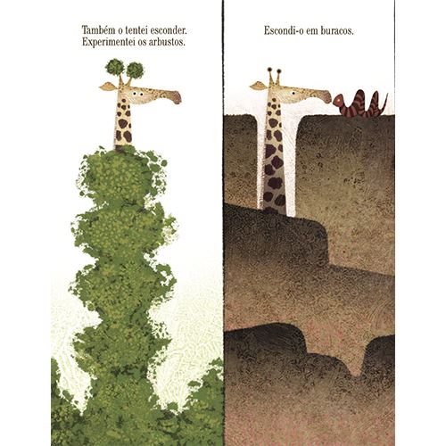 Os animais também têm problemas! Descobre quais, neste livro bem-disposto e divertido da autoria de Jory John e ilustrado por Lane Smith – uma das duplas literárias preferidas das crianças e dos pais. UMA AMIZADE IMPROVÁVEL MOSTRA A FORÇA DA EMPATIA, DO RESPEITO E DA ACEITAÇÃO DA SINGULARIDADE DE CADA UM. És capaz de adivinhar o que é que está a deixar esta girafa tão envergonhada? Será que é ... O SEU PESCOÇO GIGANTESCO?! Sim! É exatamente isso. Como é que descobriste? O Eduardo não entende porque é que o seu pescoço é tão, tão... longo. É que nenhum outro animal tem um pescoço assim tão estranho! Toda a gente fica a olhar para ele, deixando-o embaraçado e desconfortável. Um dia, decide disfarçá-lo, enfeitá-lo e até escondê-lo estrategicamente atrás dos arbustos. É verdade. Tentou de tudo, mas não conseguiu. De repente, quando estava prestes a ficar sem opções, surge uma tartaruga (bem, na verdade, surge muito, muito lentamente) que o ajuda a perceber porque deve aceitar-se tal como é. UMA HISTÓRIA QUE ABORDA CONCEITOS FUNDAMENTAIS COMO A AUTOESTIMA E A ACEITAÇÃO, MAS SOBRETUDO A AMIZADE INCONDICIONAL E A VALORIZAÇÃO PESSOAL.