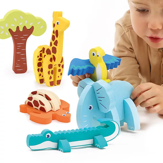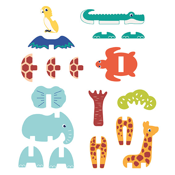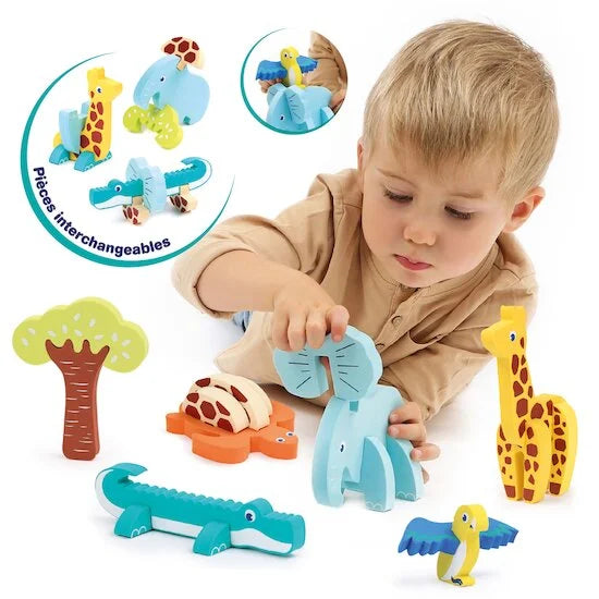 - 18 peças fáceis de montar para formar animais fantásticos e desenvolver a imaginação.