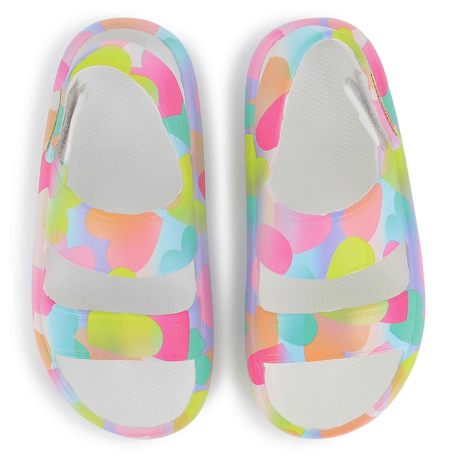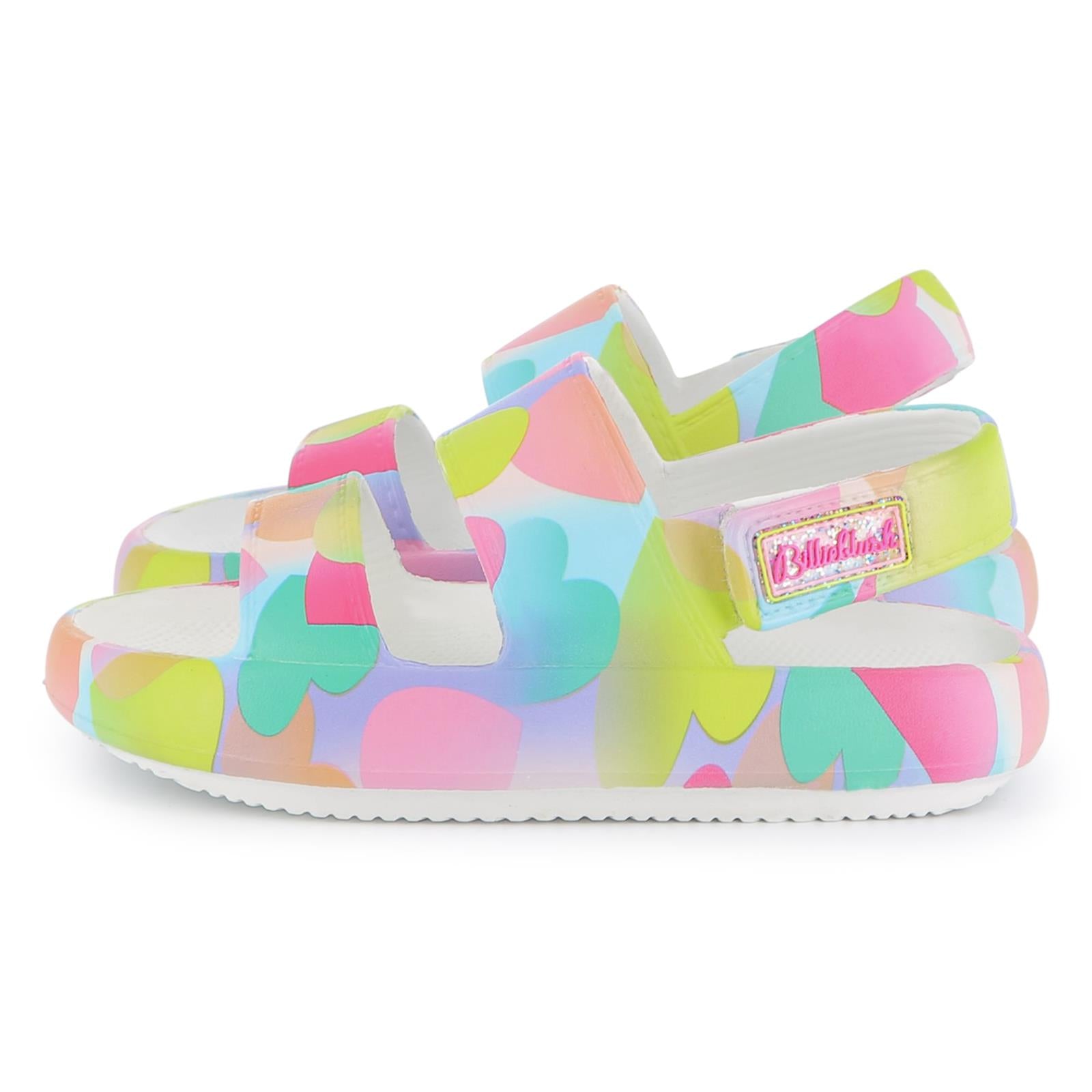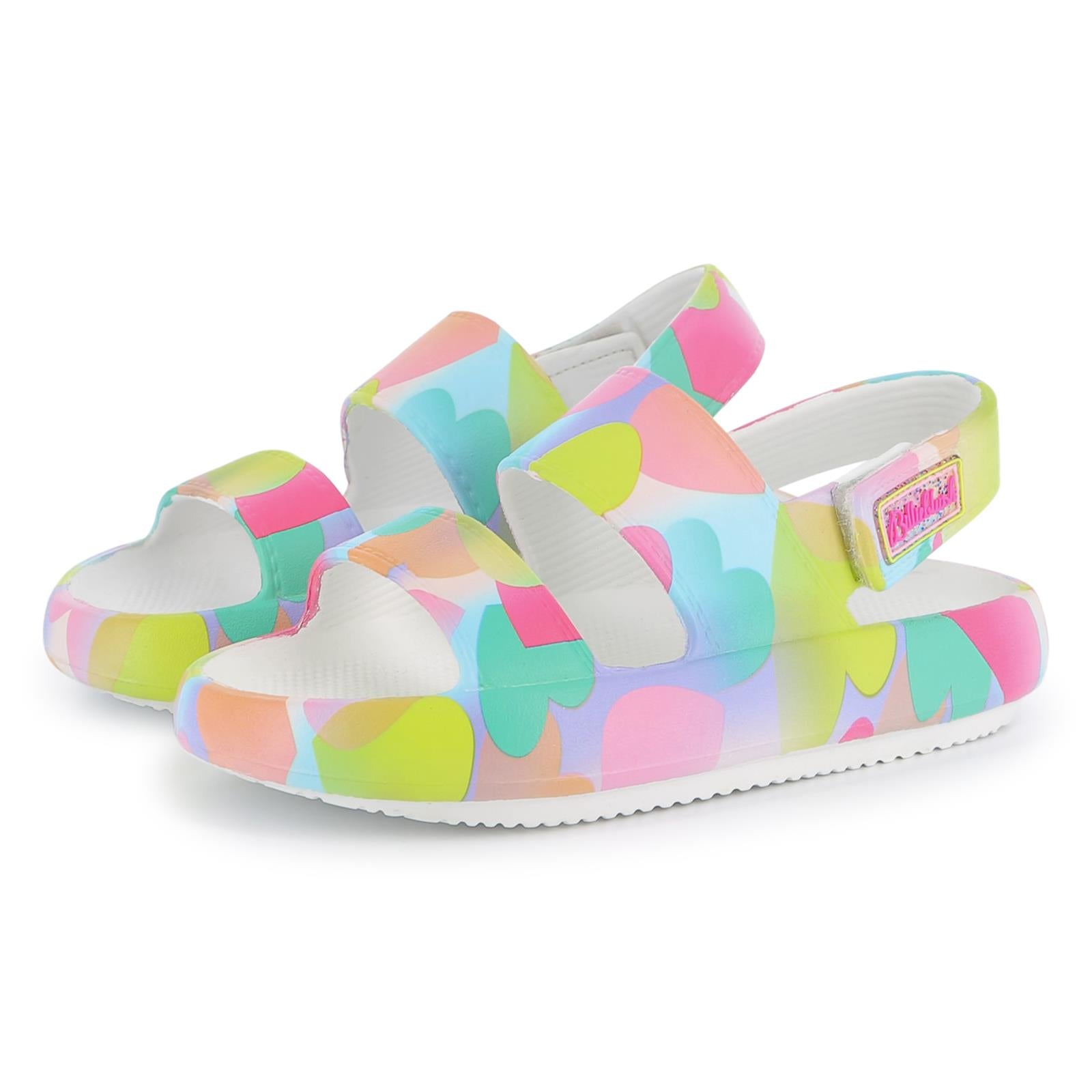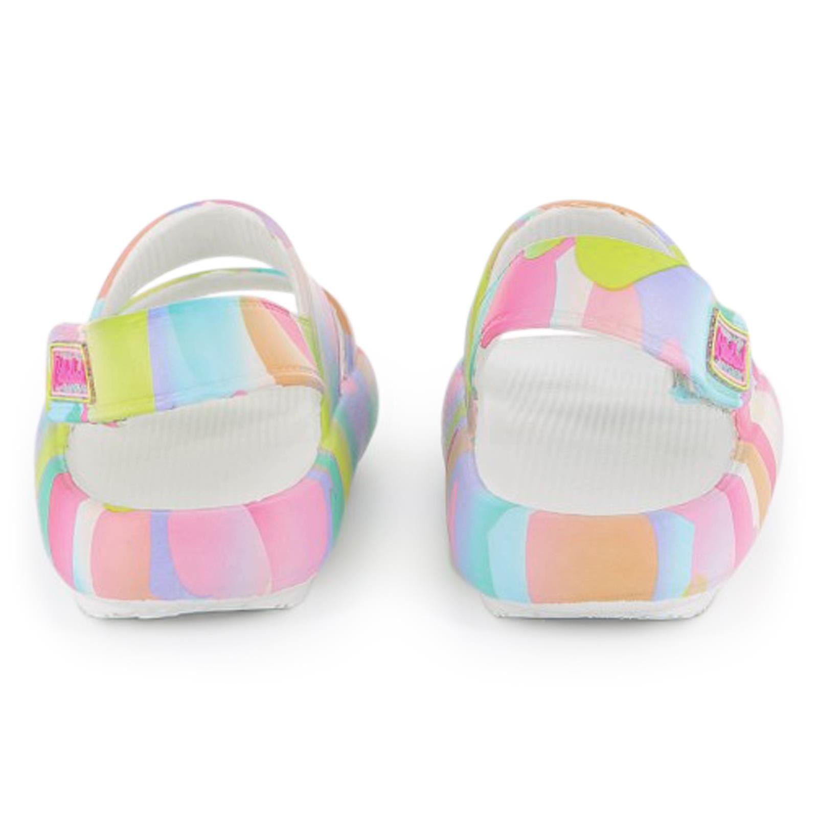 Sandália em EVA com estampado all over. Fecho em velcro com emblema de borracha da marca.