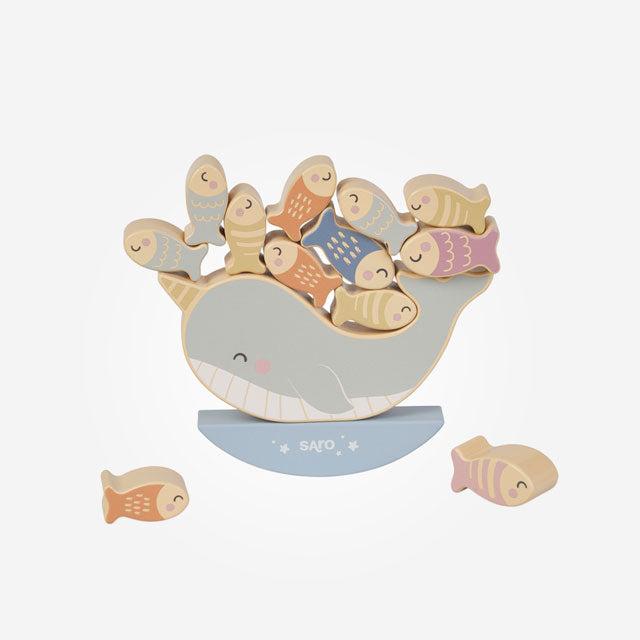 Cuidado com as ondas! Este jogo de equilíbrio vai testar as capacidades de toda a família. Consiste em colocar o maior número possível de peixinhos no narval sem que caiam. Coloque o narval grande no balancé e, em grupo ou sozinho, empilhe cuidadosamente os peixinhos. Conseguirá juntá-los todos antes que caiam?