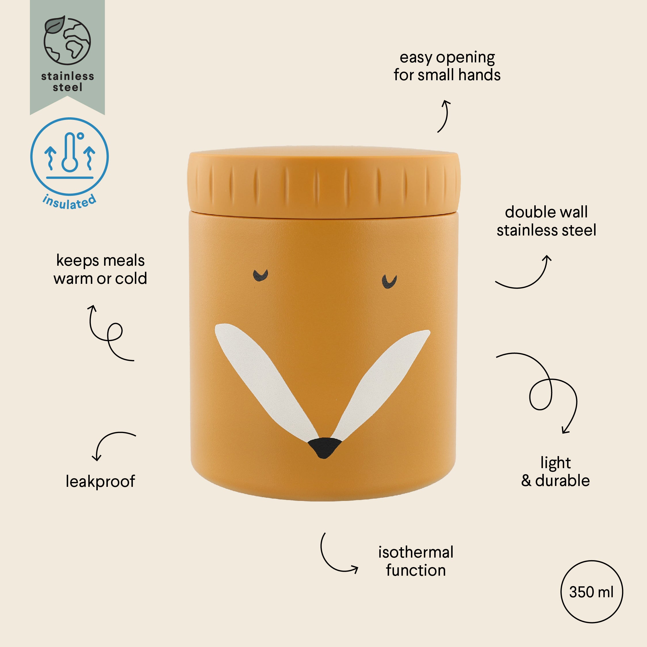 Com este prático companheiro de viagem, os bebés podem desfrutar de uma boa refeição em viagem. Mantenha as refeições perfeitamente quentes ou frias com este frasco para alimentos em aço inoxidável de parede dupla e inteligentemente isolado. É fácil de abrir, leve de transportar, à prova de fugas e durável. É de aço inoxidável, por isso é totalmente seguro para alimentos, proporcionando-lhe uma perfeita tranquilidade.