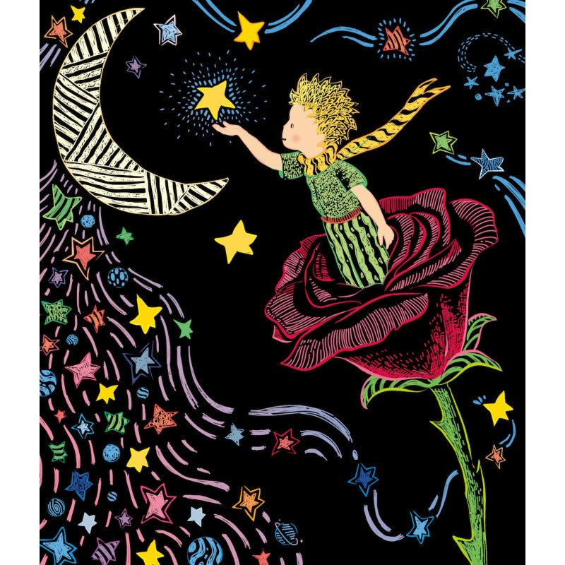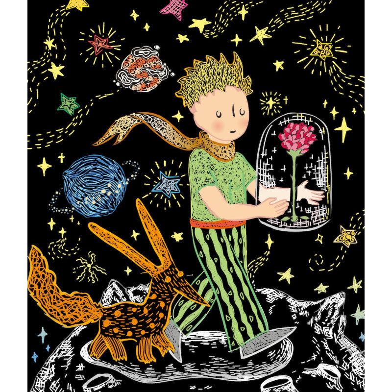 Raspar para revelar imagens escondidas traz calma e concentração – e é quase mágico ver as figuras surgirem por baixo da superfície preta. Neste livro de scratch da coleção O Principezinho, encontras 15 folhas com maravilhosas ilustrações do icónico universo.