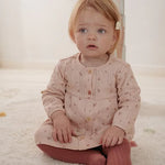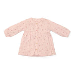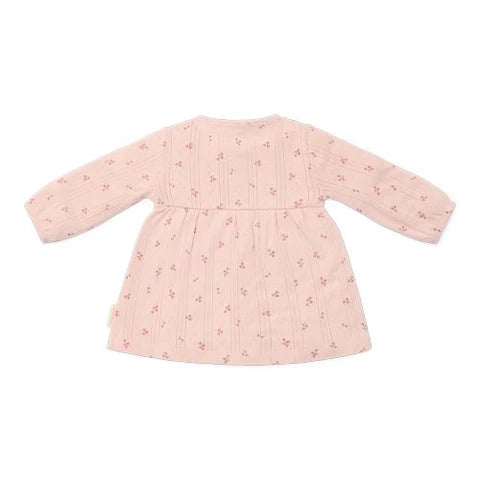 Pronta para sonhar acordada com o vestido Fairy Flowers? Este lindo vestido vai despertar a imaginação da sua pequena com um jardim de contos de fadas repleto de flores. Feito de algodão orgânico macio, combina o conforto com um design deslumbrante. A refinada estrutura em ponto ajour do tecido, num bonito tom rosa claro, é adornada com um encantador estampado de pequenas flores. A bainha elástica nas mangas compridas confere ao vestido um toque sofisticado. O fecho com charmosos botões com aspeto de madeira apresenta um botão marcante em forma de flor.
